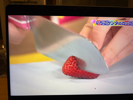- いちごのヘタを切って、先から1cmを切る。