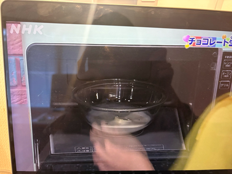 - 温めても大丈夫なボウルにチョコとバター・生クリームを加える。