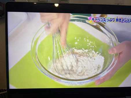 - ■(とき卵 1/2個・薄力粉 大2・水 大1)をよく混ぜて、タネをまんべんなくつける。
