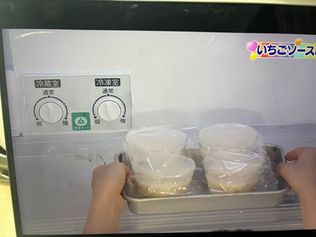 - 型に入れてラップをし、冷蔵庫で1時間ほど冷やす。